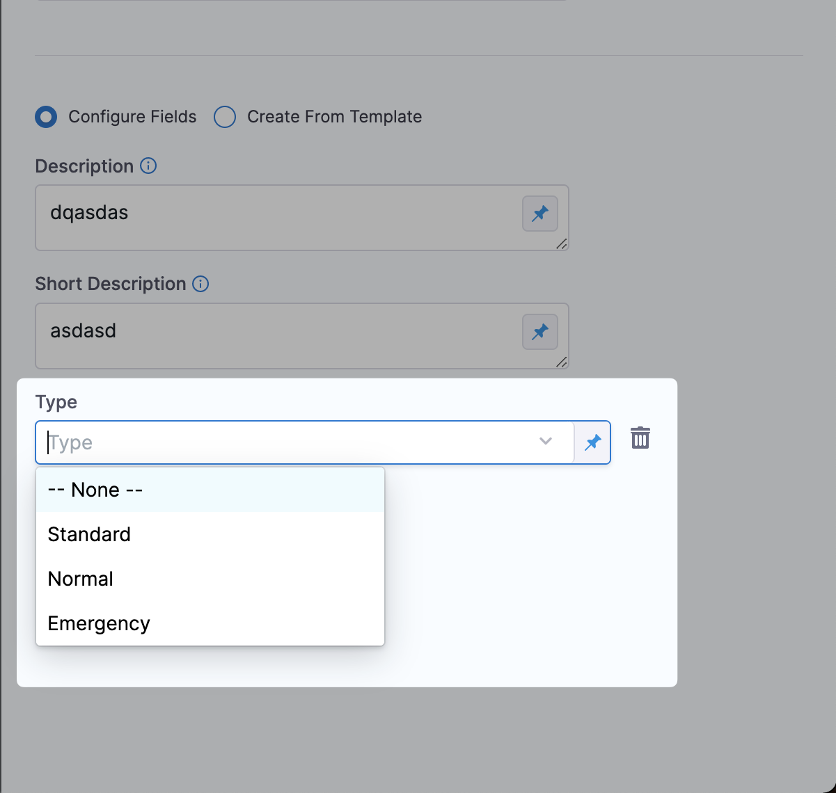 In Type, select Normal or Emergency.