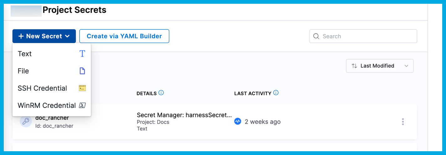 For example, when you create a new project or a new organization, a Harness Secret Manager is automatically scoped to that level.